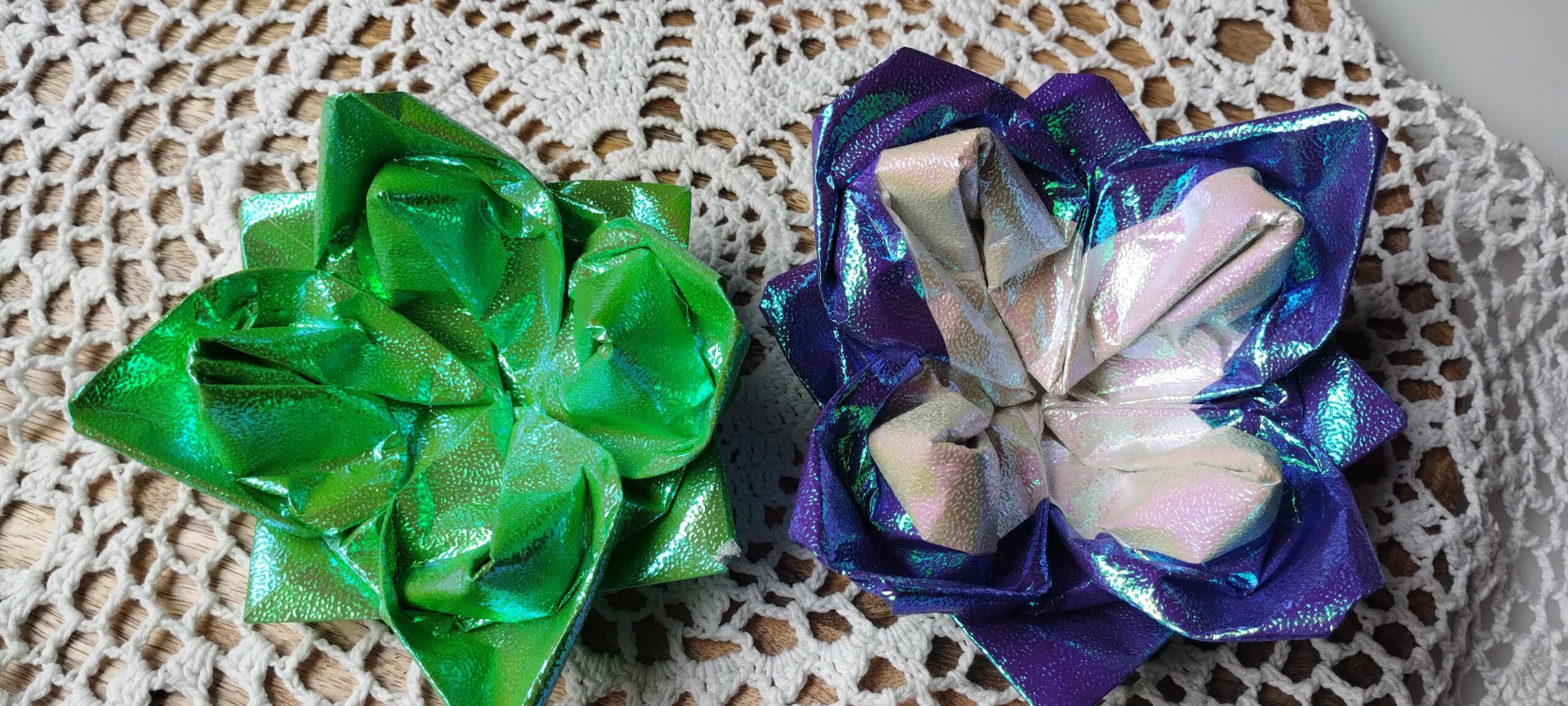 Ces fleurs en origami, inspirées du symbole spirituel du lotus, sont des créations vibratoires qui apportent beauté, légèreté et élévation à votre espace.