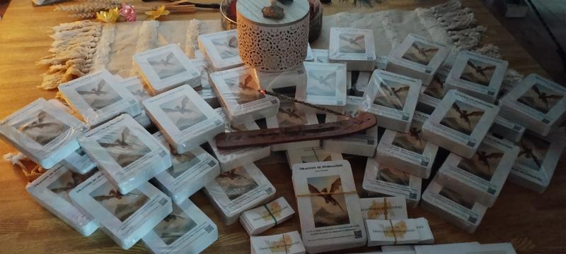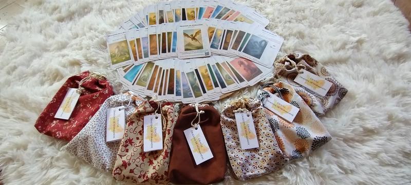 Tarif : 35 € (oracle de 66 cartes dans un étui en tissu fait mains + livret en PDF)